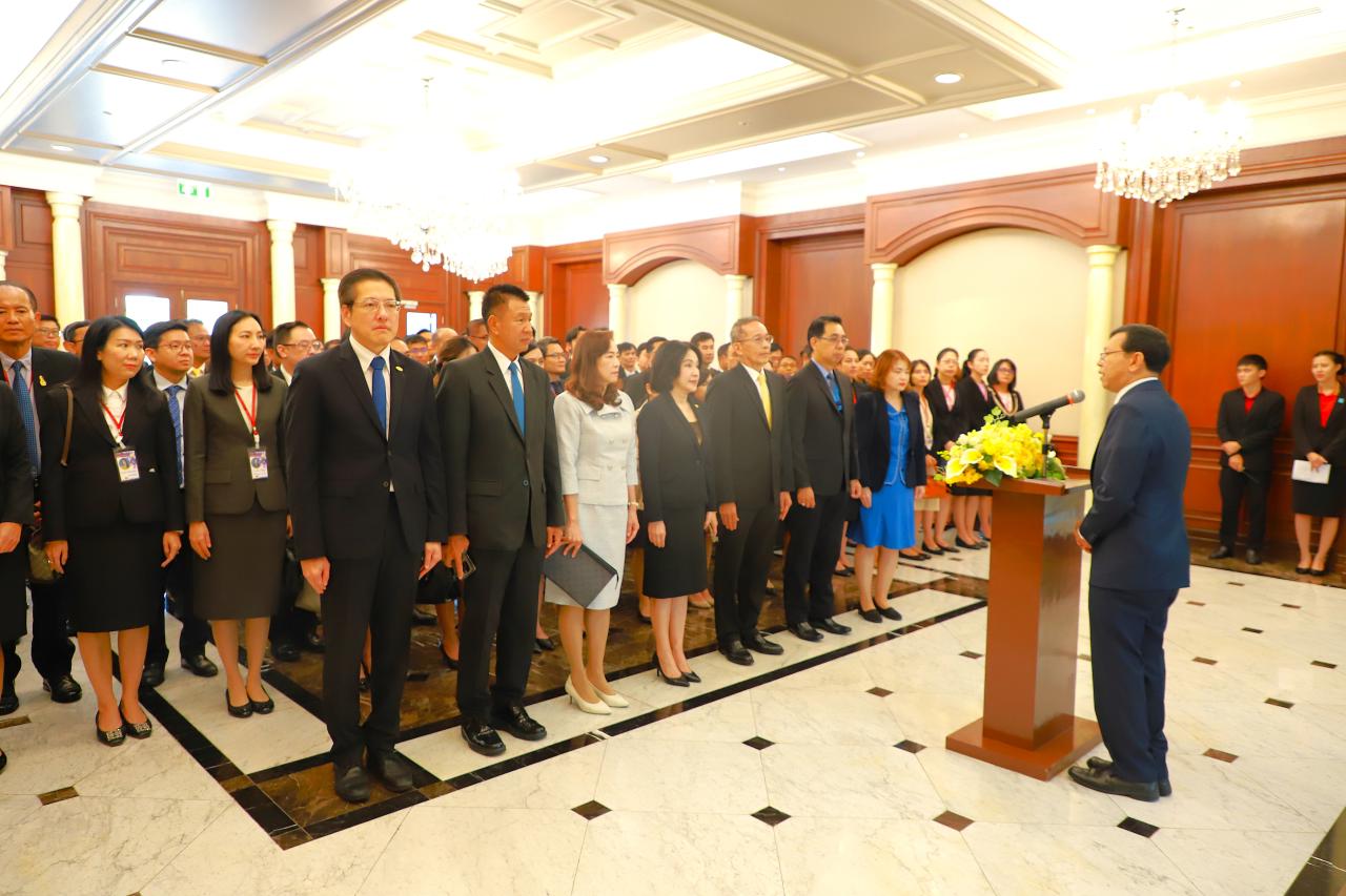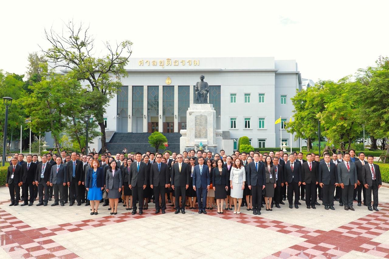 เมื่อคณะฯ เดินทางมาถึง นายดนัยศักดิ์ นาควิเชียร เลขานุการศาลฎีกา ให้การต้อนรับคณะฯ บริเวณโถง ชั้น ๒ อาคารศาลยุติธรรม และถ่ายภาพร่วมกัน หน้าอาคารศาลยุติธรรม จากนั้นนำคณะฯ สักการะพระอนุสาวรีย์พระเจ้าบรมวงศ์เธอ พระองค์เจ้ารพีพัฒนศักดิ์ กรมหลวงราชบุรีดิเรกฤทธิ์
