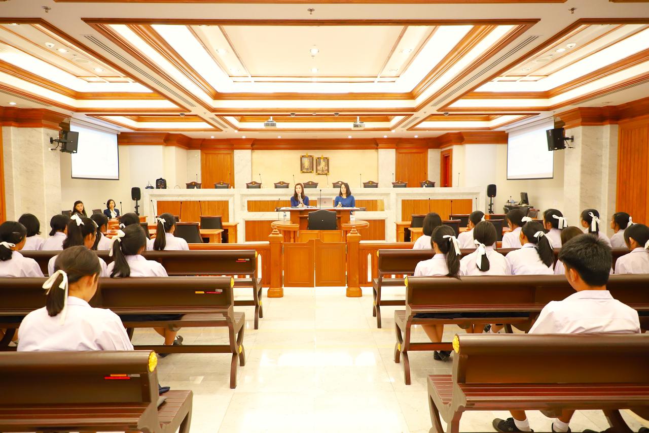 วันพฤหัสบดีที่ ๒๘ สิงหาคม ๒๕๖๘ เวลา ๐๙.๐๐ - ๑๒.๐๐ นาฬิกา คณะครูและนักเรียนจากโครงการส่งเสริมความเป็นเลิศด้านนิติศาสตร์-รัฐศาสตร์ สำหรับนักเรียนระดับชั้นมัธยมศึกษาตอนปลาย โรงเรียนศรียานุสรณ์ จังหวัดจันทบุรี ศึกษาดูงาน ณ ศาลฎีกา