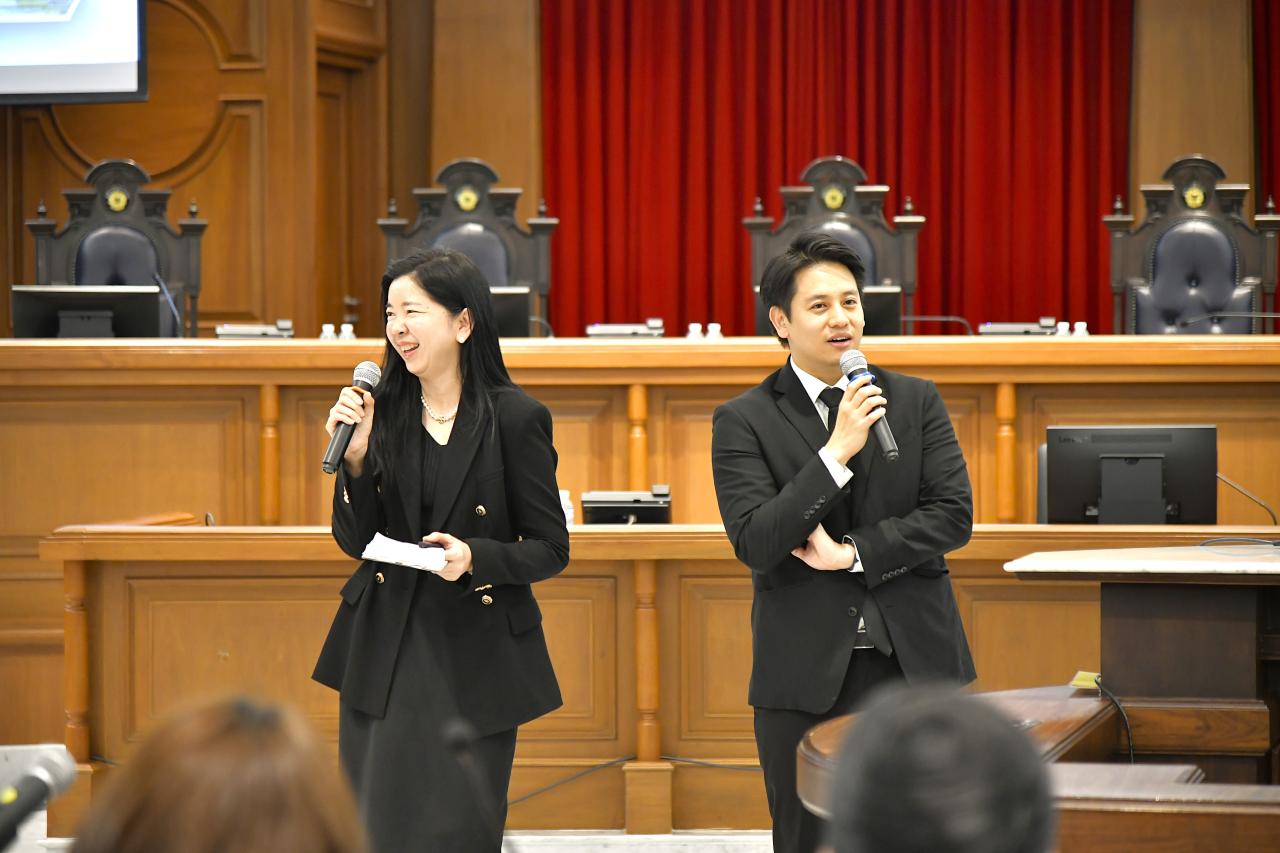 เมื่อคณะฯ เดินทางมาถึง นายสุวิทย์ พรพานิช ประธานศาลอุทธรณ์ภาค ๓ ช่วยทำงานชั่วคราวในตำแหน่งรองประธานศาลฎีกา กล่าวต้อนรับคณะฯ และถ่ายภาพร่วมกันบริเวณหน้าอาคารศาลยุติธรรม