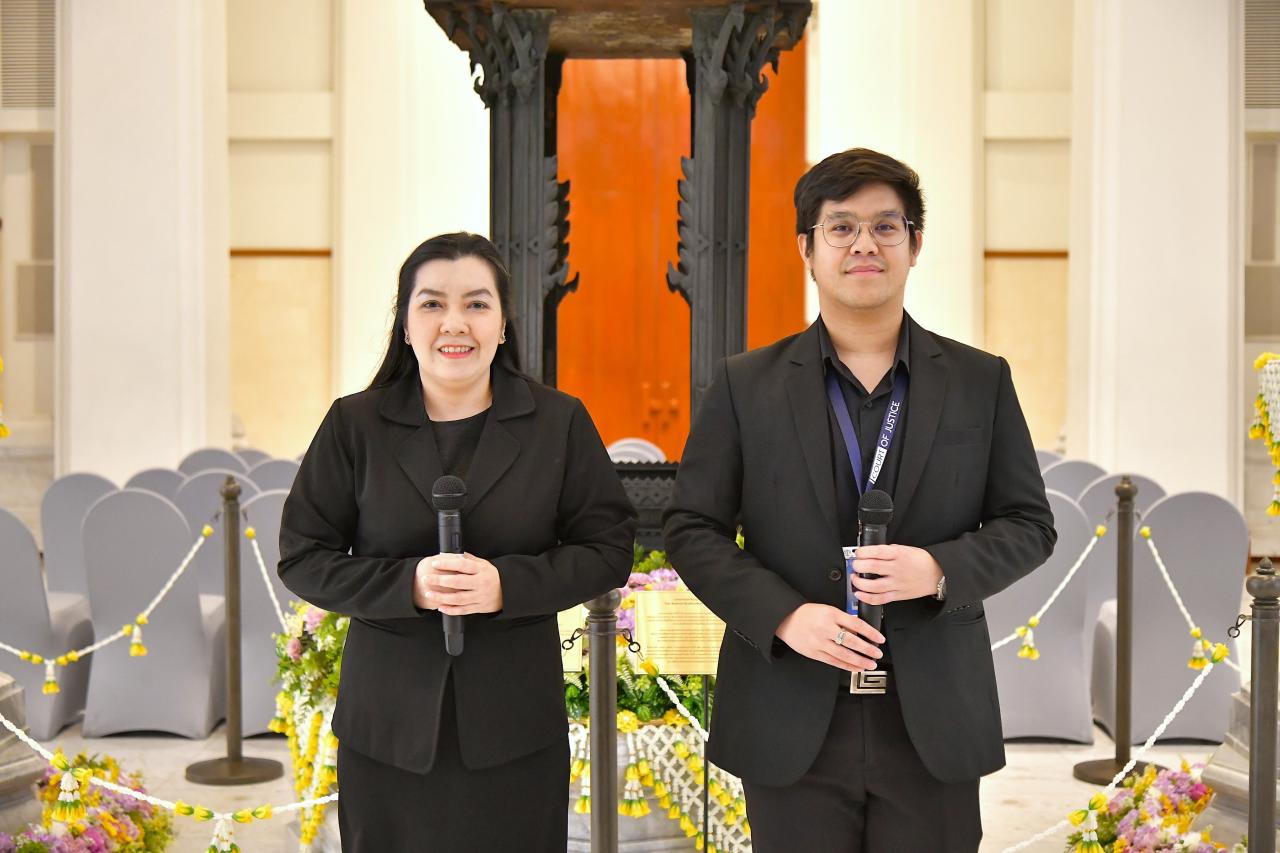 จากนั้นคณะฯ เยี่ยมชมยอดปราสาทยุติธรรมและศาลฎีกานิทรรศน์ พร้อมรับฟังการบรรยาย ณ บริเวณโถงอาคารชั้น ๒ อาคารศาลฎีกา