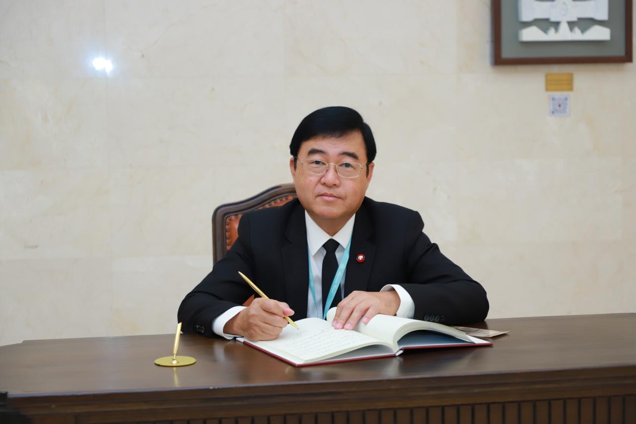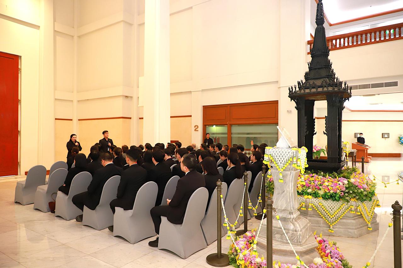 เมื่อคณะฯ เดินทางมาถึง นายธีระพงศ์ ฮั่นไพศาล รองเลขานุการศาลฎีกา พร้อมคณะให้การต้อนรับ บริเวณโถง ชั้น ๒ อาคารศาลยุติธรรม ถ่ายภาพร่วมกันหน้าอาคารศาลยุติธรรม และนำคณะฯ สักการะพระอนุสาวรีย์พระเจ้าบรมวงศ์เธอพระองค์เจ้ารพีพัฒนศักดิ์ กรมหลวงราชบุรีดิเรกฤทธิ์
