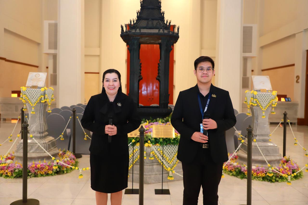 เยี่ยมชมยอดปราสาทยุติธรรมและศาลฎีกานิทรรศน์ พร้อมรับฟังการบรรยาย ณ บริเวณโถงอาคารชั้น ๒ อาคารศาลฎีกา และเยี่ยมชมร้านศาลฎีการำลึก ณ บริเวณชั้น ๑ อาคารศาลฎีกา