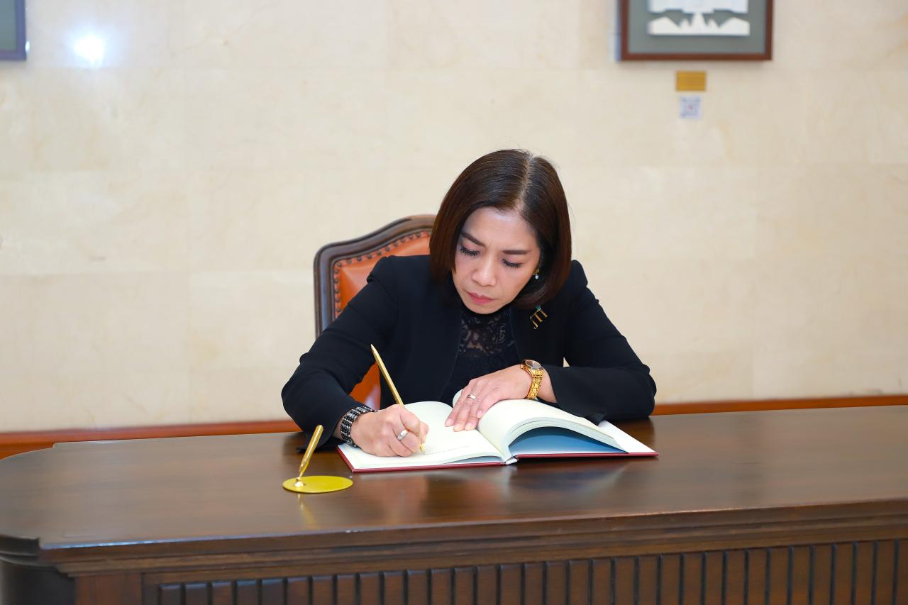 เมื่อคณะฯ เดินทางมาถึง นายสุวิทย์ พรพานิช รองประธานศาลฎีกา และนายคมน์ทนงชัย ฉายไพโรจน์ เลขานุการศาลฎีกา พร้อมคณะรองเลขานุการศาลฎีกา ให้การต้อนรับ ณ ห้องรับรองชั้น ๒ อาคารศาลยุติธรรม และถ่ายภาพร่วมกันหน้าอาคารศาลยุติธรรม จากนั้นนำคณะฯ สักการะพระอนุสาวรีย์พระเจ้าบรมวงศ์เธอ พระองค์เจ้ารพีพัฒนศักดิ์ กรมหลวงราชบุรีดิเรกฤทธิ์