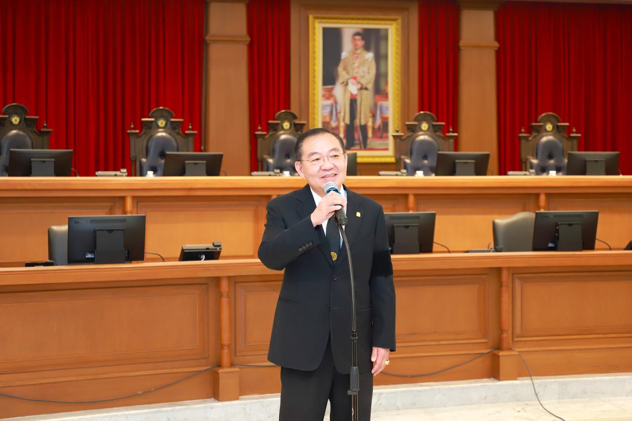 เยี่ยมชมห้องพิจารณาคดี ๒๑๘ โดยมี นายสุรินทร์ ชลพัฒนา ประธานแผนกคดีอาญาของผู้ดำรงตำแหน่งทางการเมืองในศาลฎีกา กล่าวต้อนรับคณะฯ และรับฟังการบรรยายพิเศษ หัวข้อ “การพิจารณาคดีอาญาของผู้ดำรงตำแหน่งทางการเมือง” โดย นายกอบชัย ชูโต ผู้พิพากษาหัวหน้าศาลประจำกองผู้ช่วยผู้พิพากษาศาลฎีกา และนายปุณณัตถ์ บุนนาค ผู้พิพากษาศาลชั้นต้นประจำกองผู้ช่วยผู้พิพากษาศาลฎีกา ช่วยทำงานชั่วคราวในตำแหน่งผู้พิพากษาศาลชั้นต้นประจำสำนักประธานศาลฎีกา
