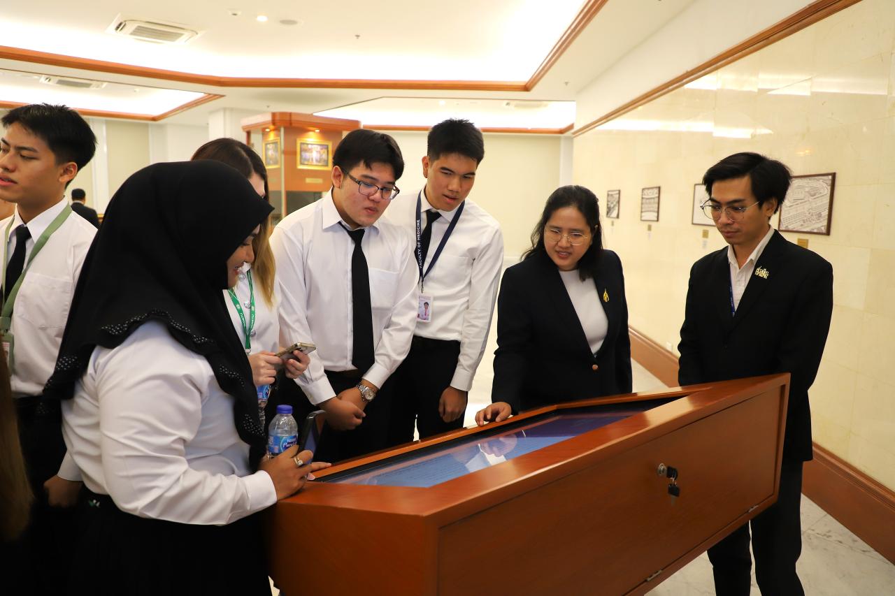เยี่ยมชมยอดปราสาทยุติธรรมและศาลฎีกานิทรรศน์ และรับฟังการบรรยายความรู้เกี่ยวกับยอดปราสาทยุติธรรมและศาลฎีกานิทรรศน์ ณ บริเวณโถงอาคารชั้น ๒ อาคารศาลฎีกา และเยี่ยมชมทัศนียภาพสวนกลางอาคารศาลฎีกา