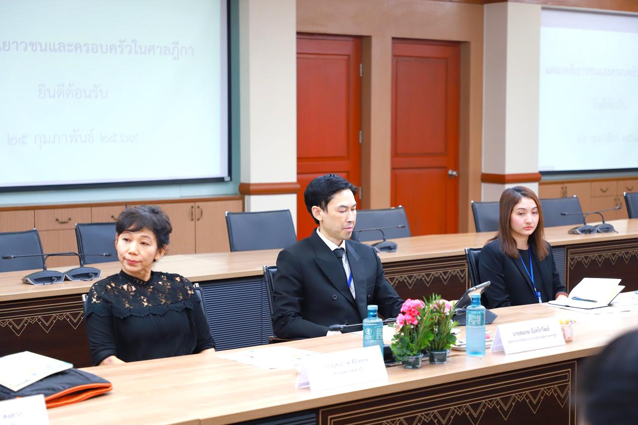 วันพุธที่ ๒๕ กุมภาพันธ์ ๒๕๖๙ เวลา ๑๓.๐๐ นาฬิกา ณ ห้องประชุม ๑๑๖ ชั้น ๑ อาคารศาลฎีกา นายอริยะ นาวินธรรม ประธานแผนกคดีเยาวชนและครอบครัวในศาลฎีกา ให้การต้อนรับ นายโกมล พรมเพ็ง อธิบดีกรมพินิจและคุ้มครองเด็กและเยาวชน และคณะ ในโอกาสเข้าพบเพื่อหารือแนวทางดำเนินการเกี่ยวกับการแก้ไข บำบัด ฟื้นฟูเด็กและเยาวชนที่อยู่ในการควบคุมดูแลของกรมพินิจและคุ้มครองเด็กและเยาวชน เพื่อให้การดำเนินการดังกล่าวมีความเหมาะสม เกิดประสิทธิภาพและประโยชน์สูงสุดแก่เด็กและเยาวชน
