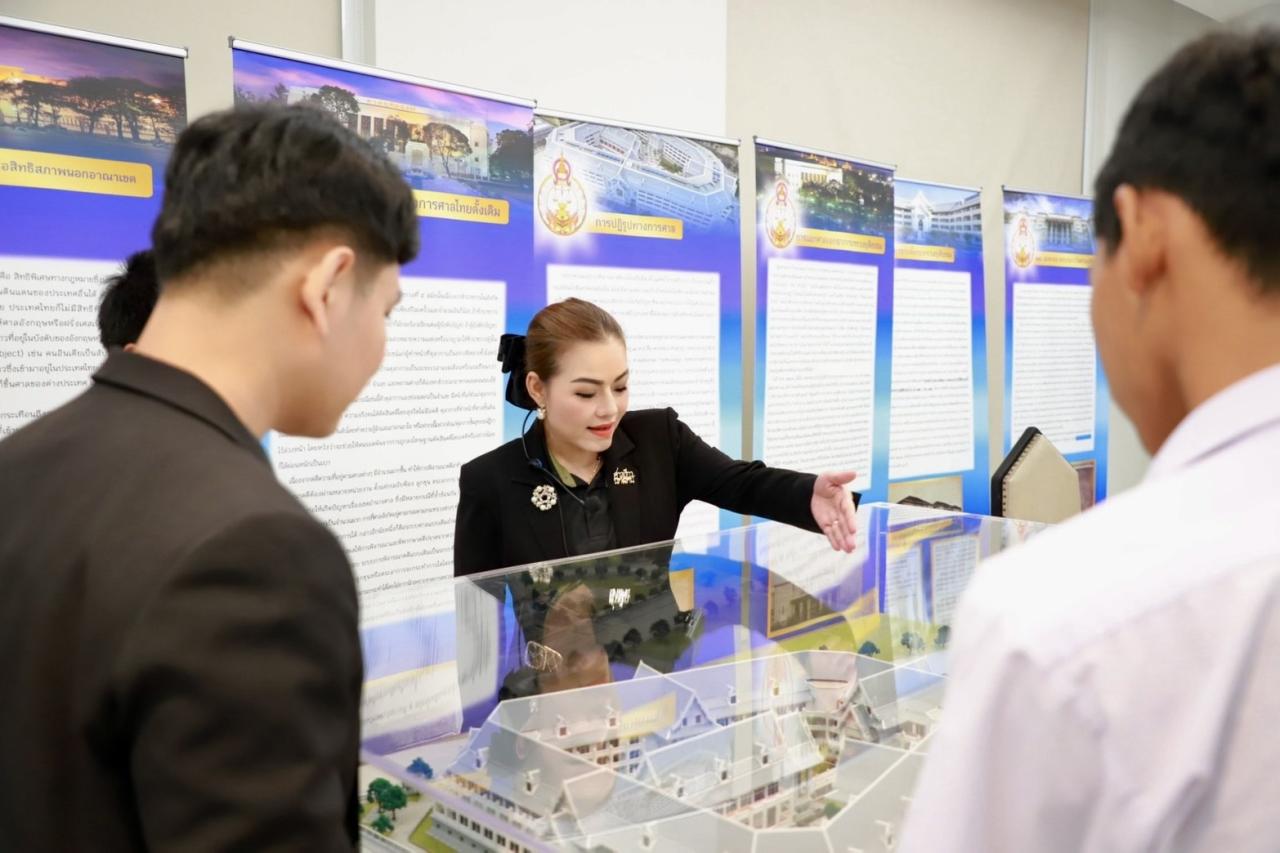 เยี่ยมชมยอดปราสาทยุติธรรมและศาลฎีกานิทรรศน์ พร้อมรับฟังการบรรยายความรู้เกี่ยวกับยอดปราสาทยุติธรรมและศาลฎีกานิทรรศน์ ณ บริเวณโถงบุษบก ชั้น ๒ อาคารศาลฎีกา และเยี่ยมชมทัศนียภาพสวนกลางอาคารศาลฎีกา