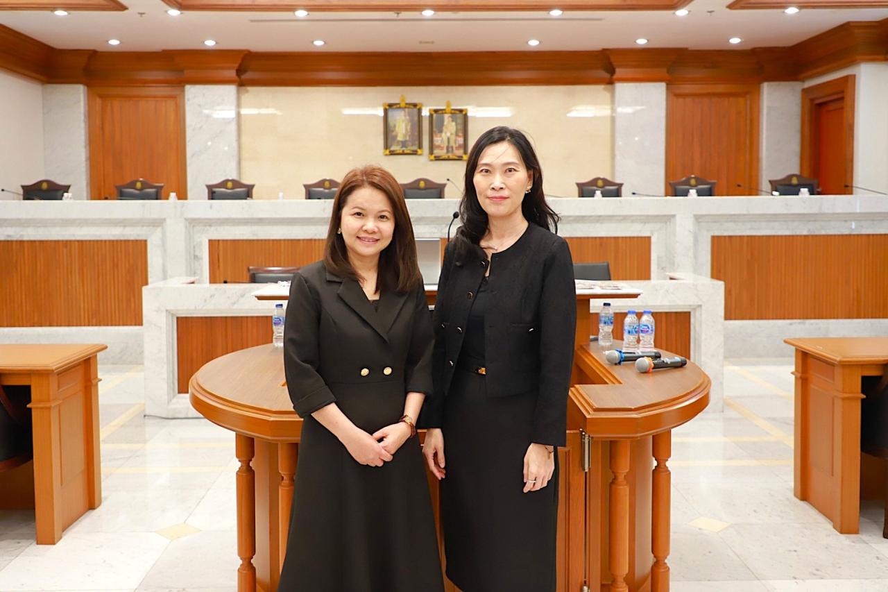 รับฟังบรรยายพิเศษ ณ ห้องพิจารณาคดี ๒๐๕ เรื่อง “การเข้าสู่ตำแหน่ง การปฏิบัติหน้าที่ของผู้พิพากษา และความรู้เกี่ยวกับศาลยุติธรรมไทย” โดยนางณิชพัณณ์ วีระจารุพันธ์ และนางสาวลดาวัลย์ อริยสิทธิ์ ผู้พิพากษาหัวหน้าศาลประจำกองผู้ช่วยผู้พิพากษาศาลฎีกา